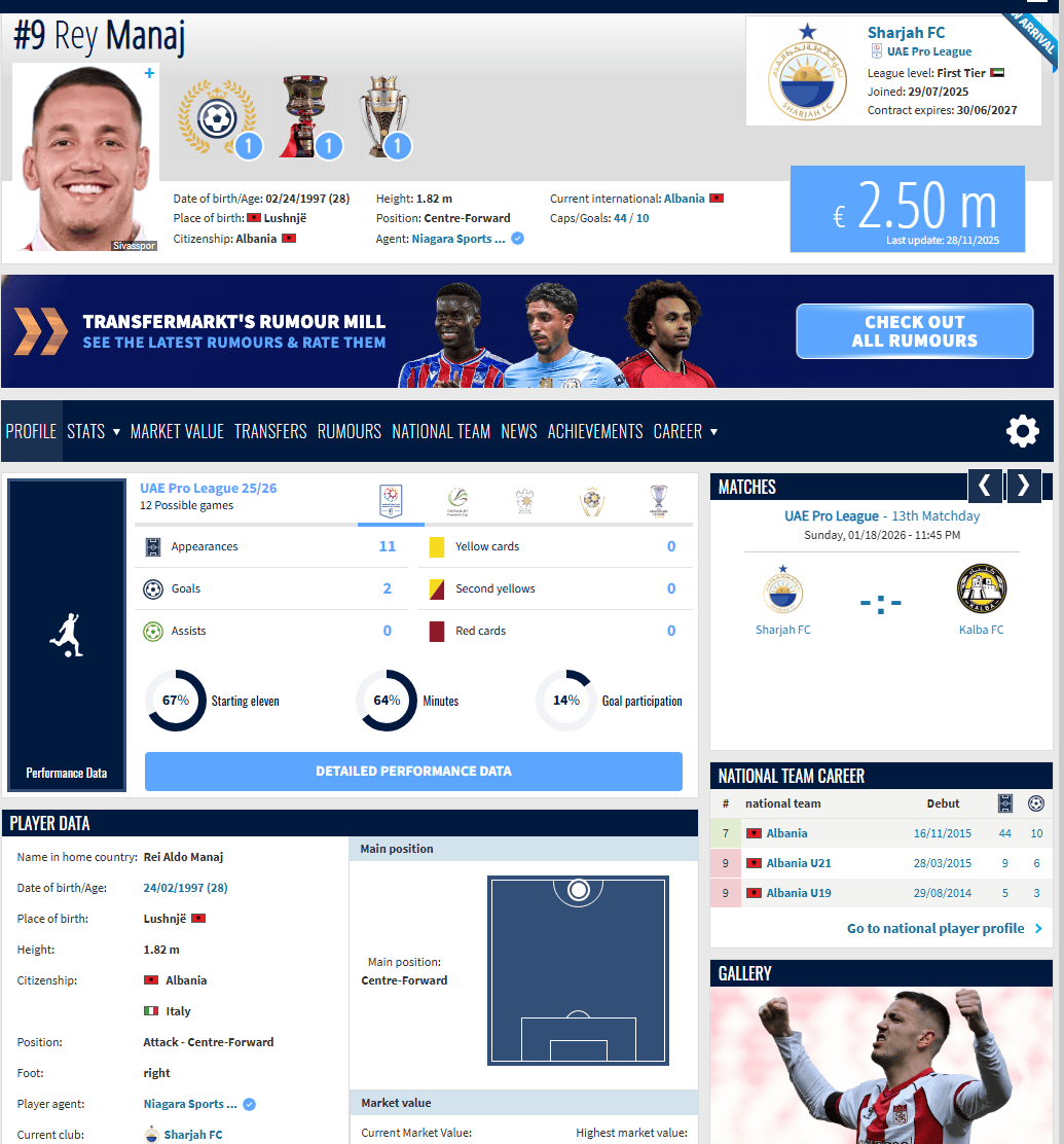 在夏季转会窗口加盟阿尔沙迦的马纳伊将离开俱乐部,前往中国继续他的职业生涯。