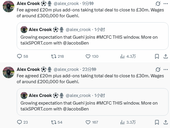 曼城在过去24小时内加强了对格伊的兴趣。天空体育新闻本周早些时候报道称,在这个转会窗口中,曼城似乎是唯一愿意与他达成协议的俱乐部。利物浦、拜仁慕尼黑和阿森纳等俱乐部都曾对在夏季免费签下格伊表示兴趣。这意味着曼城必须提出一个有吸引力的报价,才能让水晶宫和格伊愿意现在完成转会。