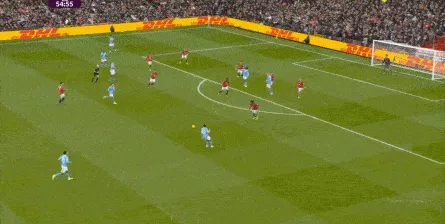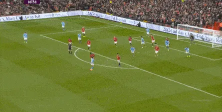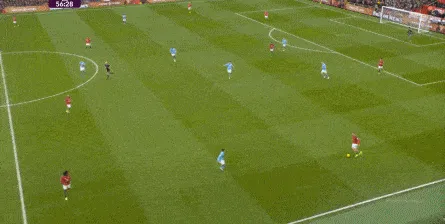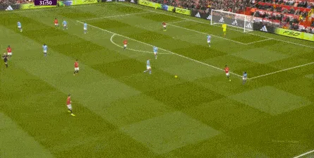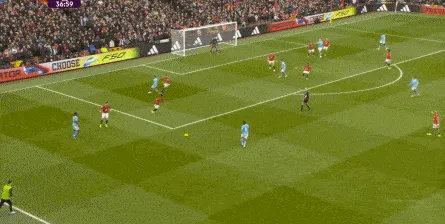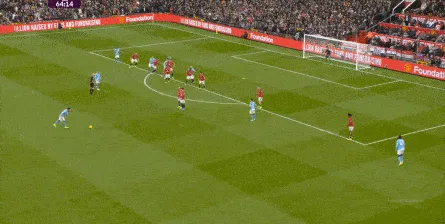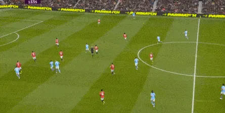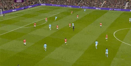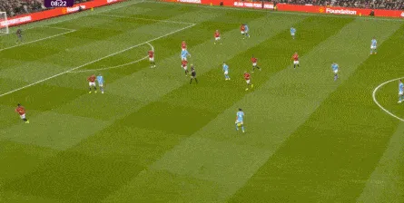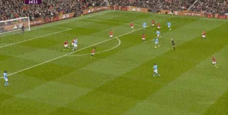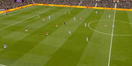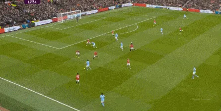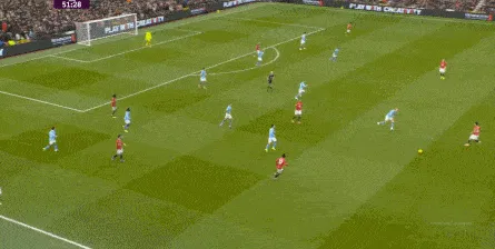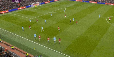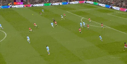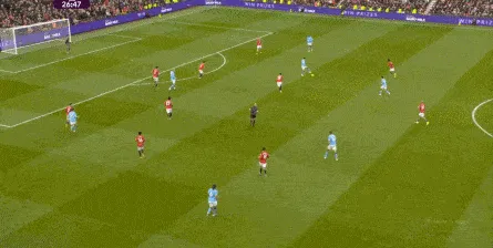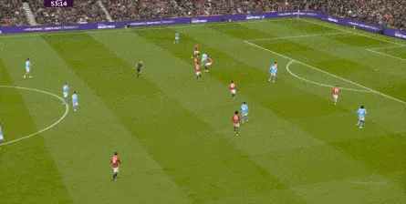 比如曼城曾在前场完成逼抢,让曼联需要在人员不整的情况下紧急防守:
